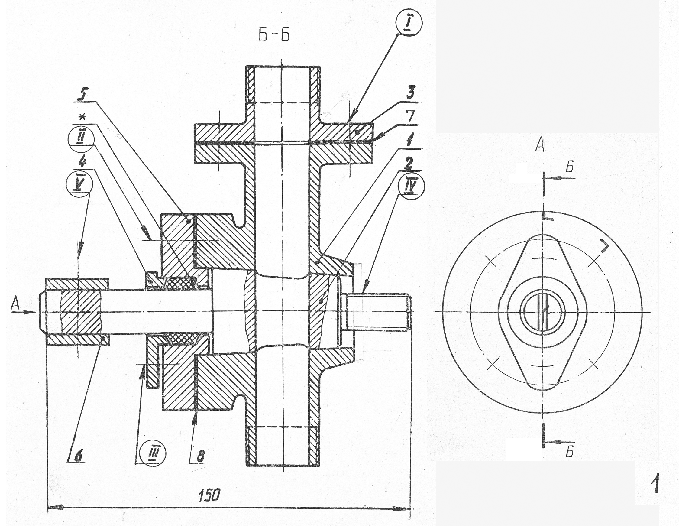 | II | Крышка поз. 5 с корпусом поз. 1 | Винты по ГОСТ 1491-80 (СТ СЭВ 2653-80) 4 шт., резьба М8, степень точности В. |