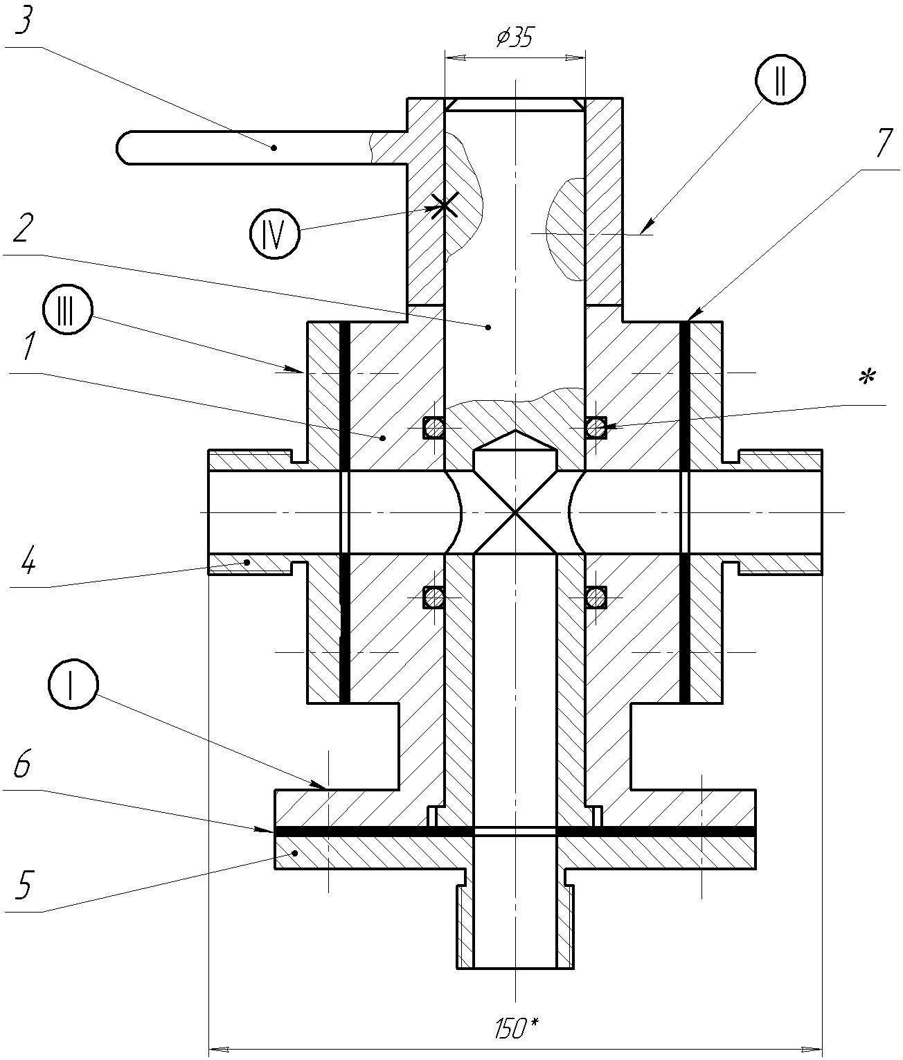 В кран распределительный входит стандартное изделие: «Кольцо НI – 0х35 ГОСТ 9833-61», 2 шт. Каждая составная часть должна иметь самостоятельный номер позиции. Номера позиций ставятся в строгом соответствии с правилами ЕСКД. | ||||||